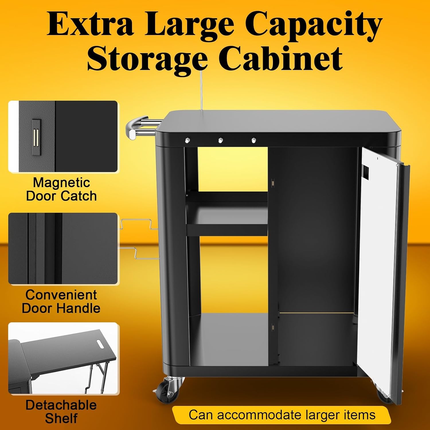 - 🔥Ample Storage Space: With a spacious cabinet, a middle storage shelf, and a bottom shelf, everything stays within reach. Store food materials, seasonings, and grilling tools neatly, while keeping your utensils and storage boxes organized in the lower compartment. No more running back and forth to the kitchen!