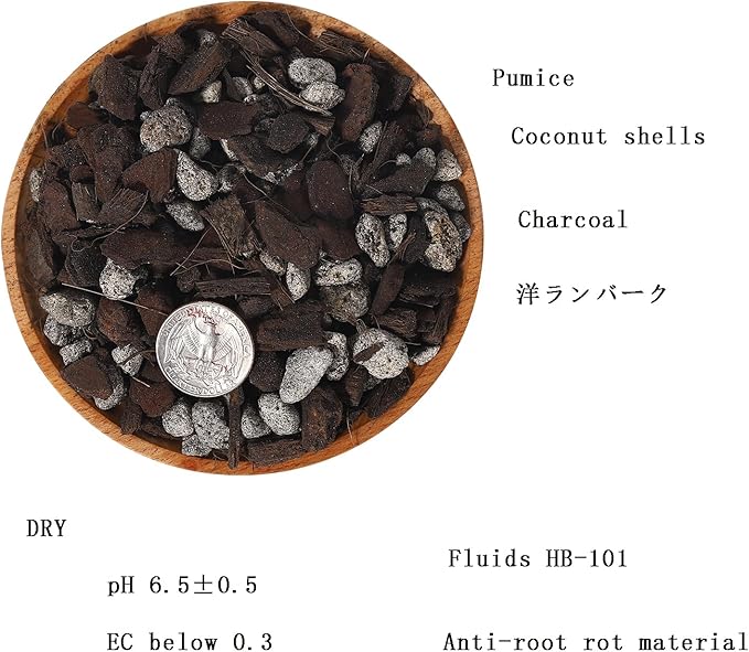 - PREMIUM INGREDIENTS - Specialized soil mix for Tropical Orchids —— Pumice, Coconut shells, Charcoal,洋ランバーク, pH 6.5±0.5, EC below 0.3, Weighs Approximately 5.5 lbs
