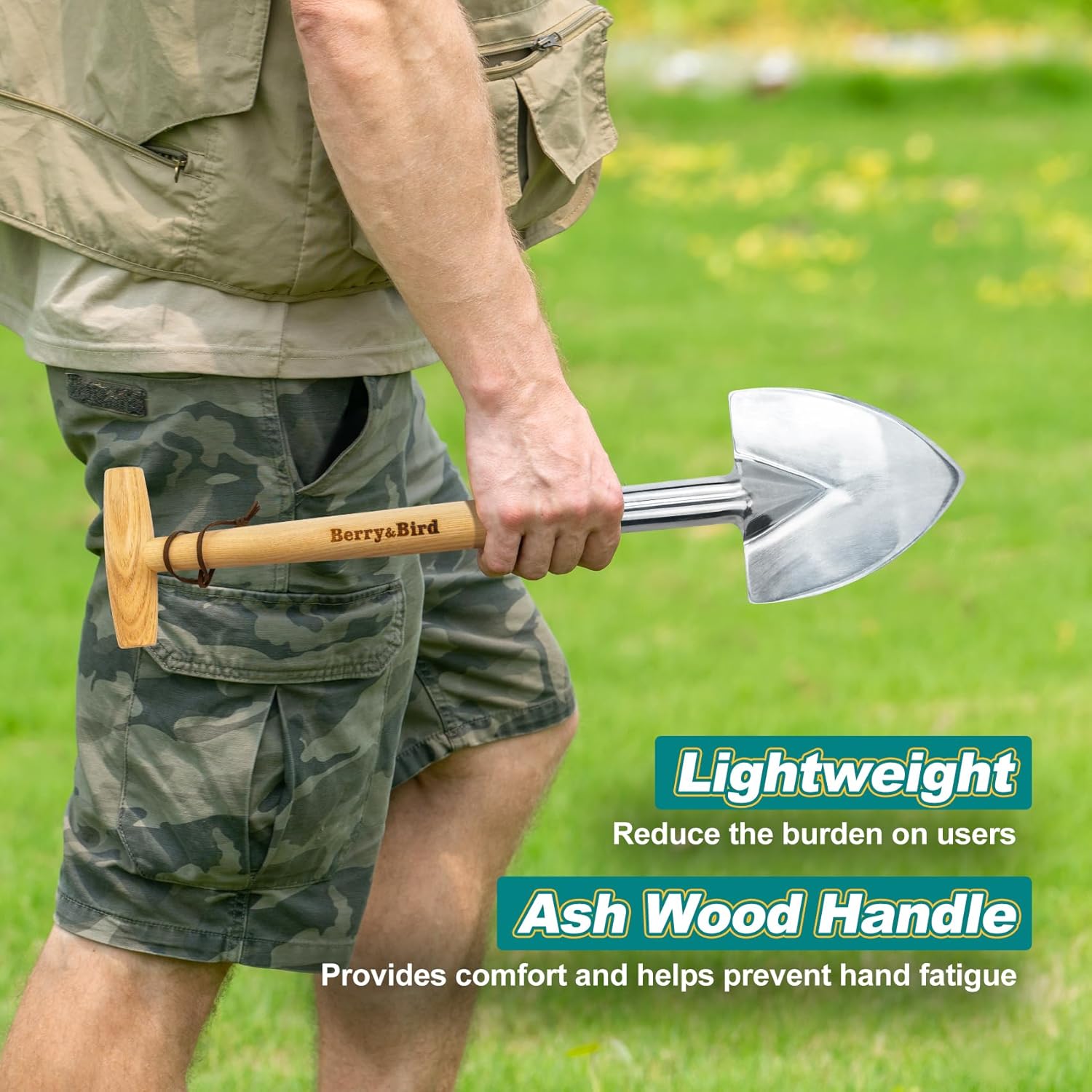 Berry&Bird Perennial Shovel, 21.6'' Pointed Head Garden Spade with Sharp Blade Wood Hand Shovel, Stainless Steel Long Trowel Gardening Tool for Roots, Planting, Digging, Transplanting and Cutting