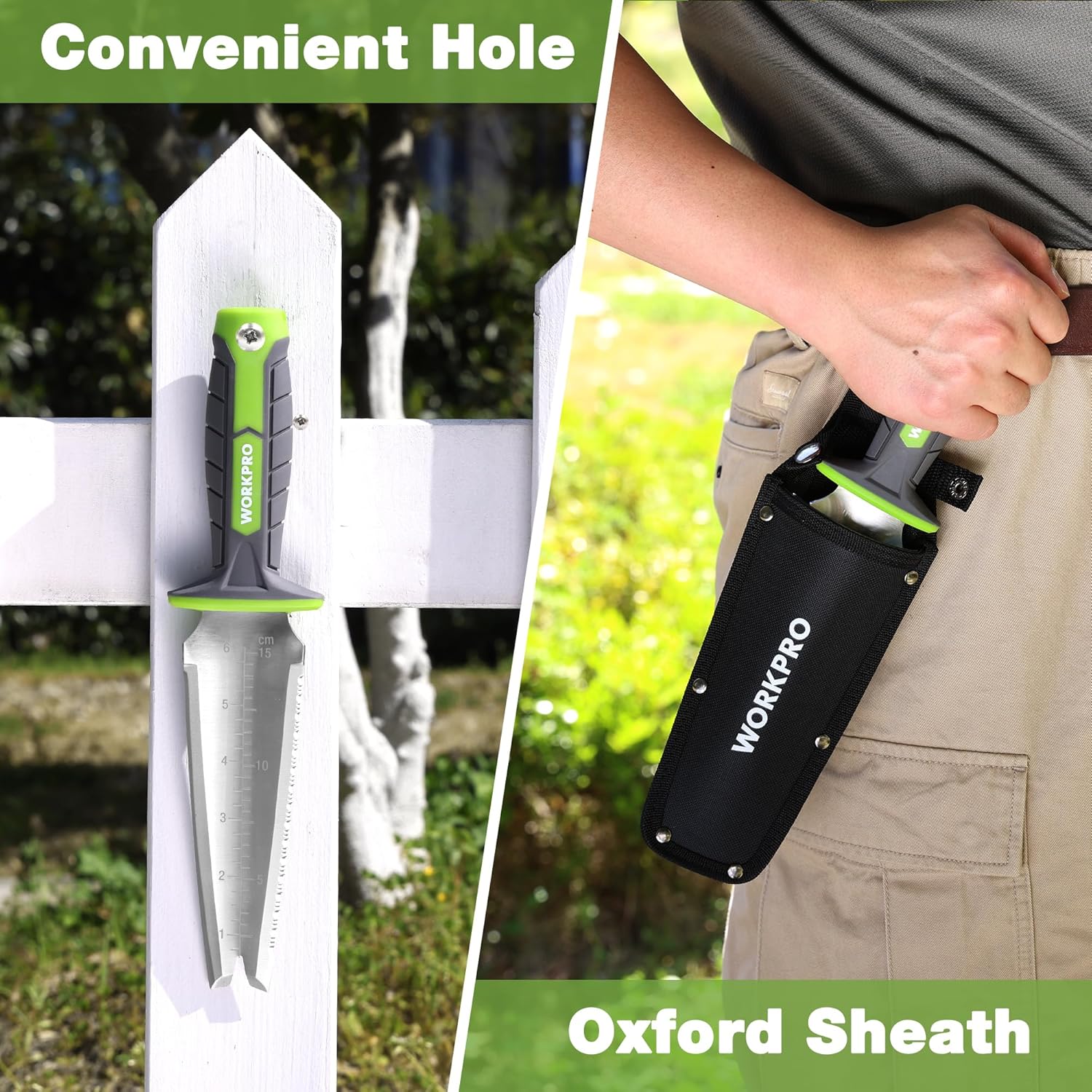 - Multi-purpose Gardening Tool: The WORKPRO hori hori gardening knife is an essential tool for any gardener, excelling at weeding, cutting roots, digging, removing plants, measuring depth, and making transplant holes. Additionally, it is great for camping, hunting, metal detecting, and more