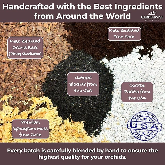 - 🛠️ Handcrafted Quality in the USA: Blended in Florida with sustainably sourced New Zealand Tree Fern and Bark, Chilean Sphagnum Moss, and USA Perlite and Biochar for premium orchid care.