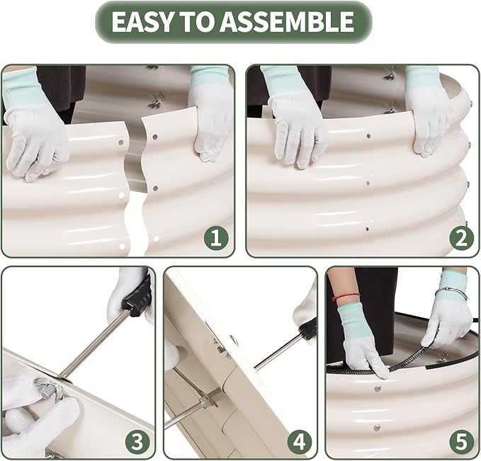 - 【High-Quality Materials & Durable】 Made from 0.7mm metal panels with double-layer anti-corrosion, this outdoor raised garden bed features a robust oval-shaped design for added strength and durability. Resistant to rust and corrosion, it provides a long-lasting gardening solution that can be reused for many years, ensuring a sustainable and reliable space for your plants to thrive