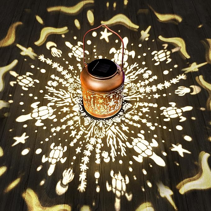 - 【Perfect Garden Decoration】Solar lights can project unique and beautiful patterns in dim environments, creating a gorgeous and warm atmosphere, bringing life and fun to your garden, attracting your family or friends. The unique hollow design and beautiful bronze color give it an artistic feel, perfect for decorating gardens, backyards, corners, exteriors, sidewalks and other scenes