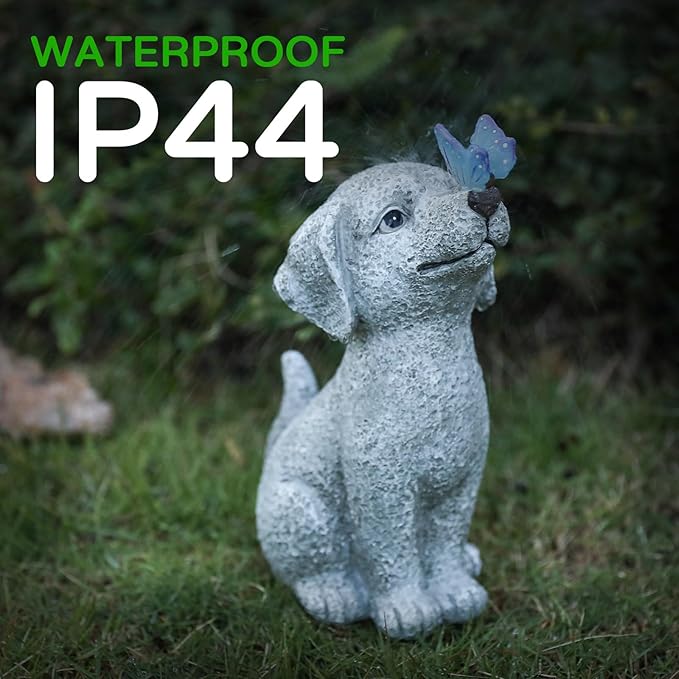 Solar Garden Outdoor Statues Dog with Butterfly Lights, Lawn Decor Puppy Figurine for Patio Balcony Yard, Yard Unique Christmas Birthdays Gift for Mom Grandma