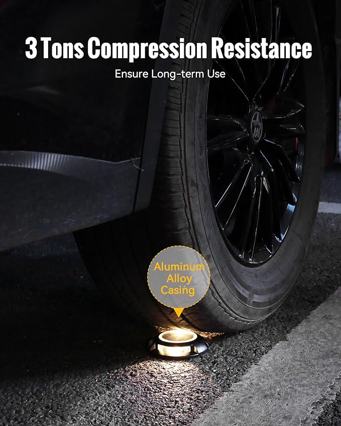 - 【Waterproof & Pressure Resistant】The solar lights outdoor waterproof is made of high-quality aluminum alloy and has been tested to withstand 5 tons of pressure and impact from cars and ships. The outdoor solar light meets the IP68 waterproof standard and can be used normally in any severe weather conditions. You don't need to disassemble it on rainy or snowy days