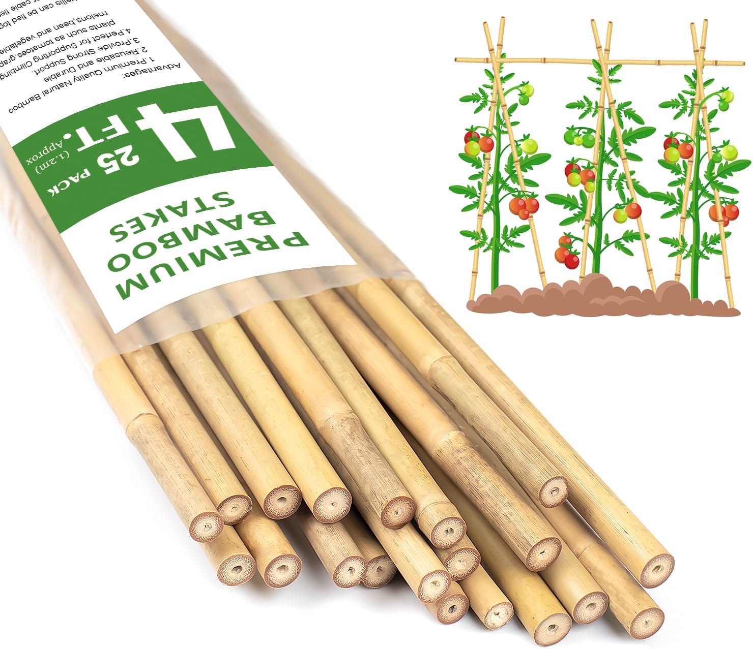 - 【Convenient Package Options】: Each package includes 25 pieces of 4-feet bamboo stakes. Available in multiple sizes (16-inch, 18-inch, 3-feet, 4-feet, and 4.8-feet) to suit any plant size and gardening requirement.