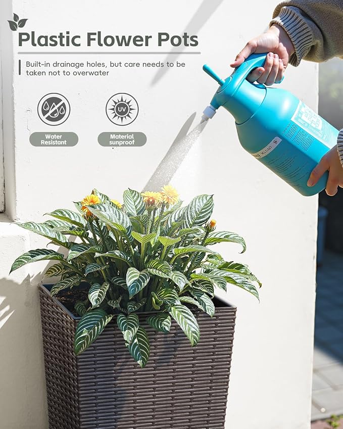 - Weather-Resistant Materials: Crafted from high-quality PP plastic, our lightweight planters weigh only 18.08 lbs, making them easy to move around. Our materials are resilient against extreme temperatures and UV rays, ensuring that your planters will stay vibrant and intact through all seasons.
