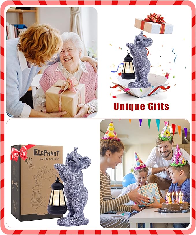 Nacome Solar Elephant Outdoor Statues for Garden: Outside Decor with Lantern Clearance for Yard Art Lawn Ornaments Porch Patio Balcony - Gifts for Grandma Mom Women