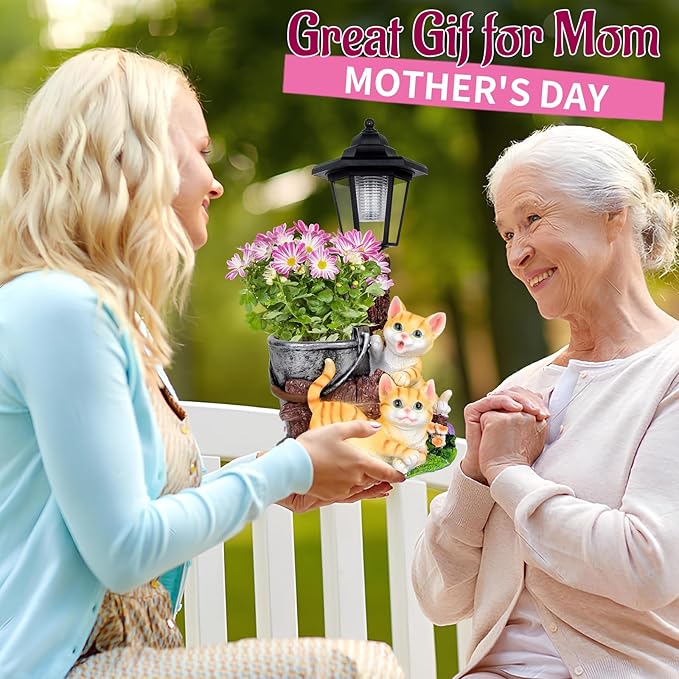 - Perfect Gift ldea: Looking for a thoughtful gift? This solar-powered catgarden decor is an excellent choice for friends, family or cat lovers. lt's idealfor occasions such as weddings, birthdays, anniversaries, Christmas,Thanksgiving, Mother's Day or as a housewarming gift.