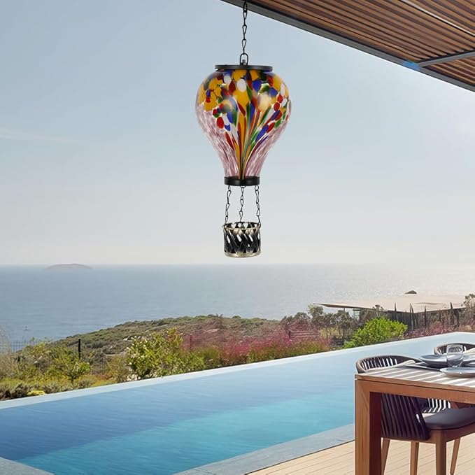 - 【Glass Hot Air Balloon Lanterns】The new hot air balloon solar lamp is no longer composed of multiple glass panels, but also a whole glass balloon. Glass solar lanterns can add color and charm to your garden during the day, and hot air balloons solar lantern lit at night can add a warm, romantic atmosphere to your garden.