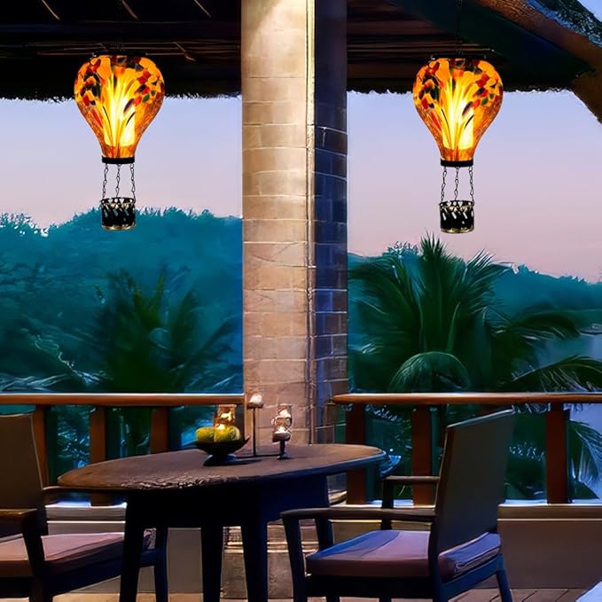 - 【Wide Application】Solar hot air balloon lantern with flame is a great home decor. You can hang the solar lantern on porches, trees, pergolas, balconies, or ledge. Add elegance and color to your outdoor space with this beautifully crafted hot air balloon decorations.