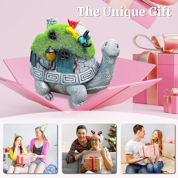 - Garden Gift Idea: It features an adorable turtle back with lawn carrying gnome. A unique gift for family and friends, expressing your care and best wishes for any occasion. Its endearing design and eco-friendly illumination make it ideal for birthdays, housewarmings, or celebrations. Brighten up loved ones' outdoor areas with beauty and cheer. Perfect for holidays, father's day, mother's day, thanksgiving, christmas, anniversaries.