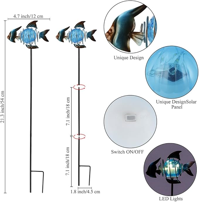 - Unique Ocean Theme Solar Lights:Inspired by cute fish, this garden solar lights uniquely shaped design sub adds a distinctive look to any beach-themed garden. Perfect for outdoor decorations and garden decorations for ocean-themed lovers