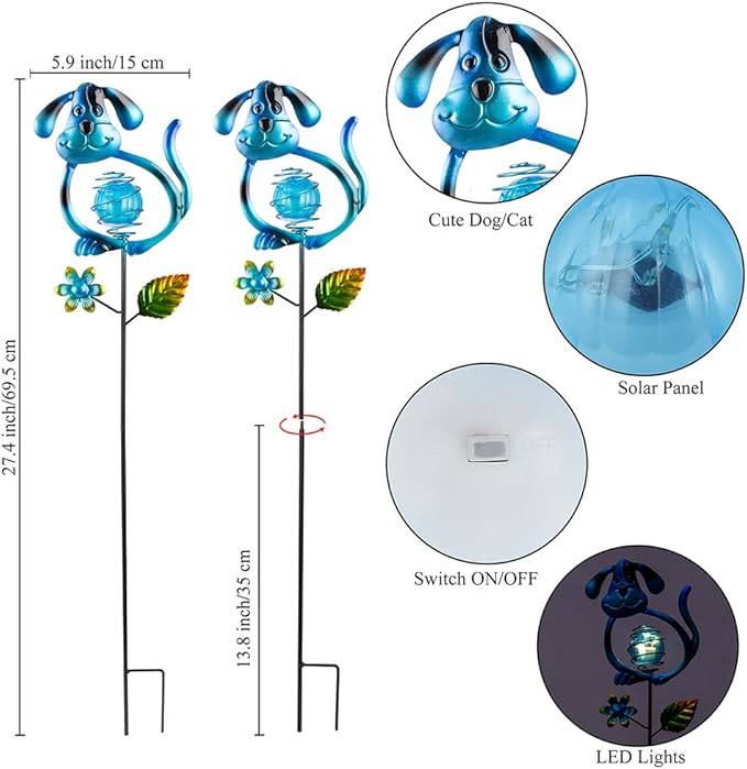 - Easy to Intall:Installing this garden decor for outside is super easy! Just tighten the screw on the metal pole, turn on the switch, and push it into the soil. That's it—you're ready to enjoy its charm