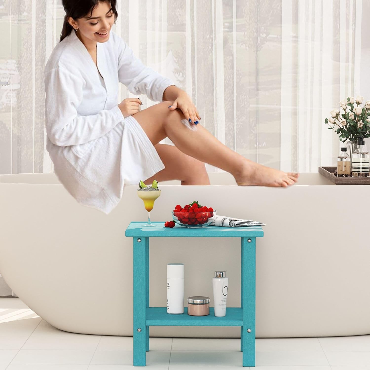 - Sturdy 2-Tier Design: This HDPE Outdoor Side Table features a practical two-tier design for additional storage and can support up to 180 lbs, making it ideal for outdoor use.