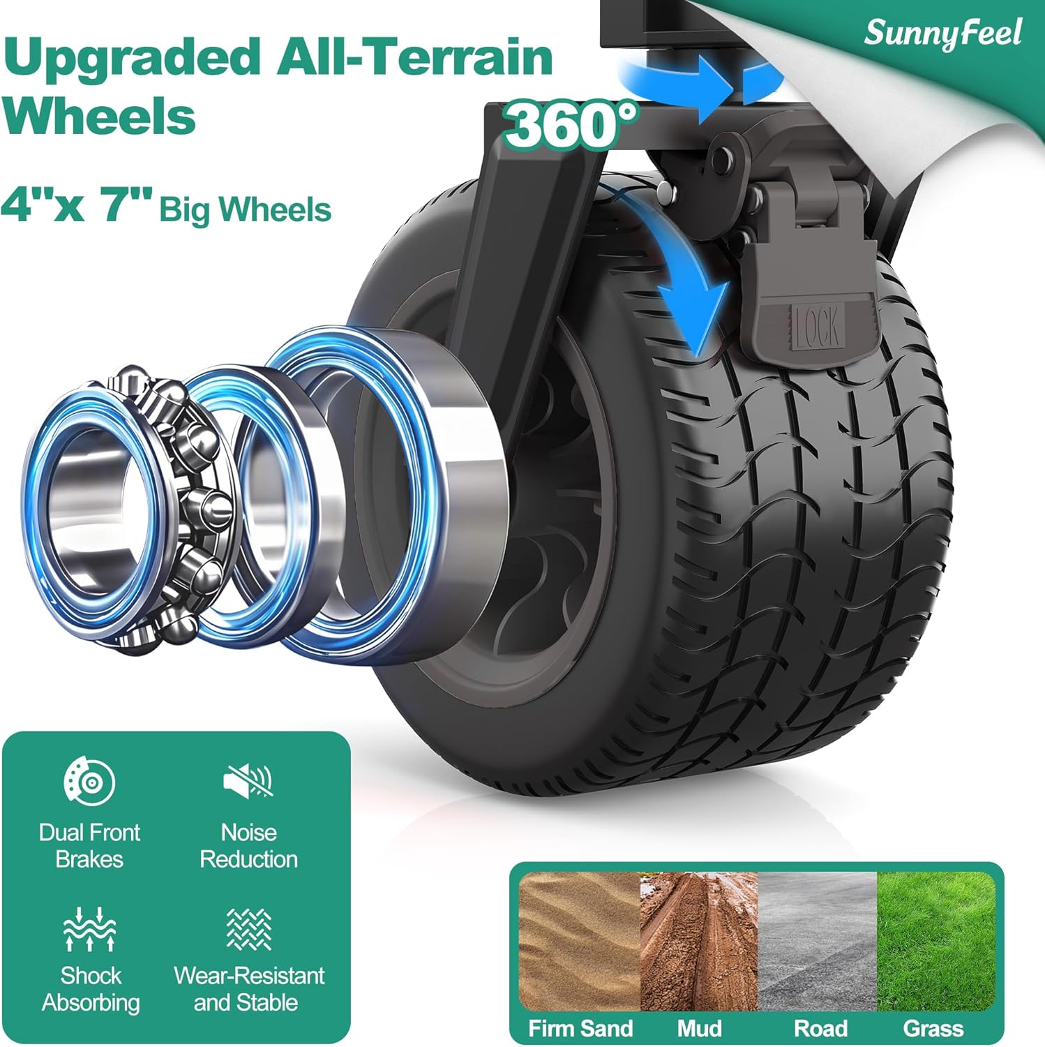 - 【Upgraded Capacity & Extra Long Decker】The SunnyFeel wagon is built to effortlessly manage heavy loads with its expansive interior, impressive weight capacity and extra long decker. Its enhanced design easily fits camping gear, groceries, or outdoor supplies in one convenient trip, simplifying your transport needs. With a spacious 300L capacity, it delivers dependable performance for tough tasks
