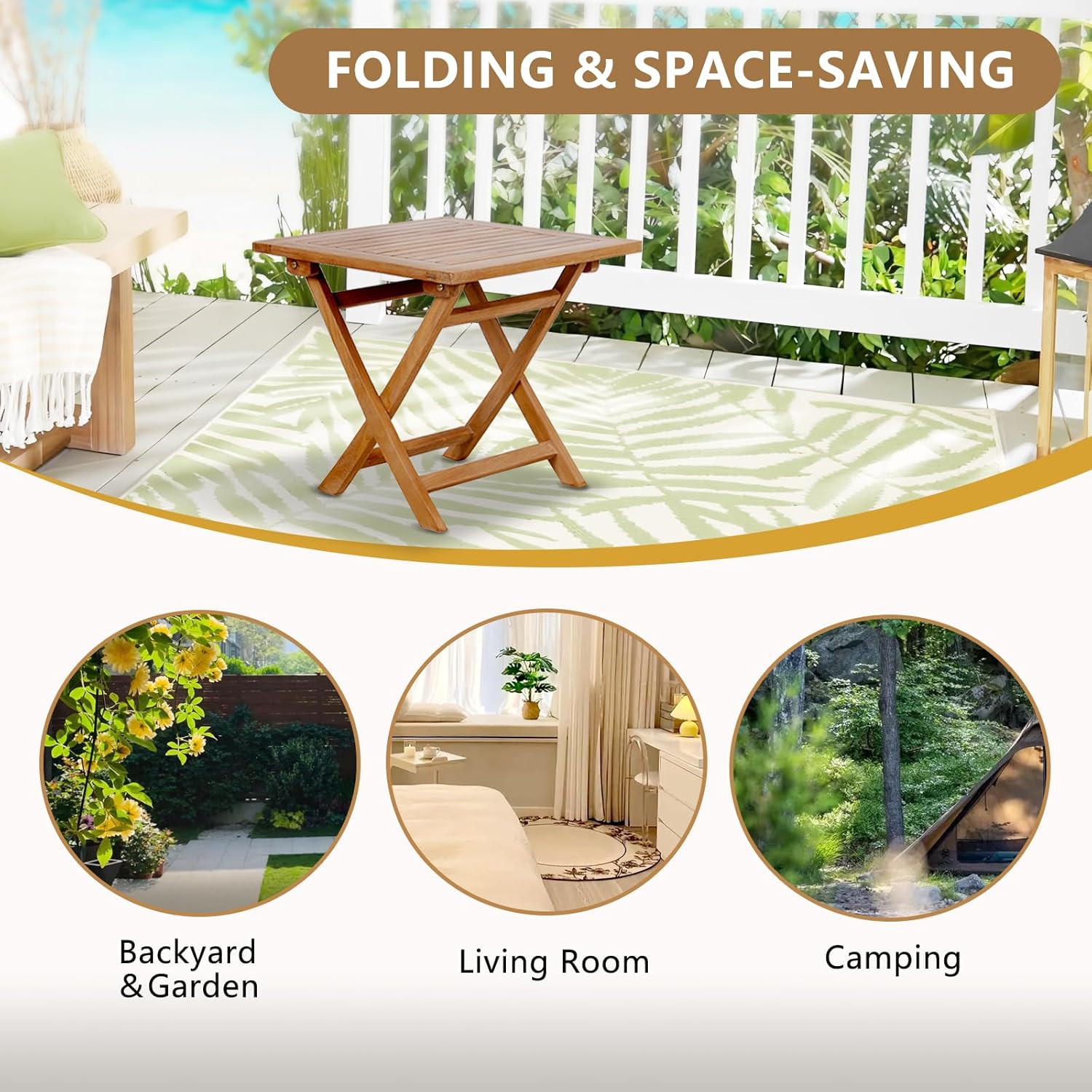 - Year-Round Versatility: Transition effortlessly between seasons - use poolside during summer, as a pumpkin display table in autumn, or paired with indoor plants in winter. The neutral wood tone complements wicker, metal, and modern furniture alike, making it adaptable to evolving decor styles.