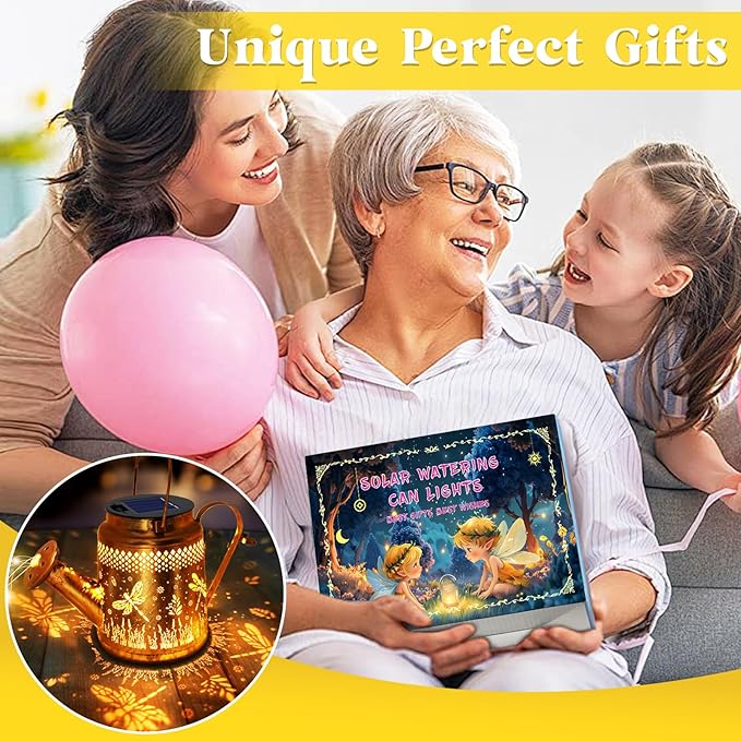 - The Perfect Gift for Your Loved Ones: This solar watering can light is a unique blend of craftsmanship and charm, featuring a handmade star and fairy design adorned with 50 enchanting LEDs. Its whimsical fairy and star motifs create a magical ambiance, making it the ideal gift to express your love.