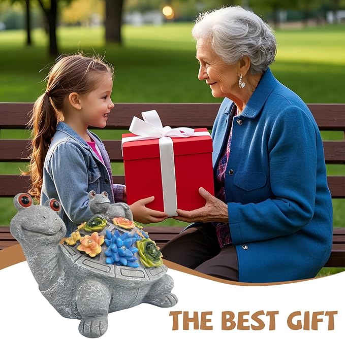 J.CARP Outdoor Solar Garden Turtle Statue with Succulents and 7 LED Lights for Garden, Patio, Lawn, Outdoor Patio and Deck Decorations, Unique Housewarming Gifts