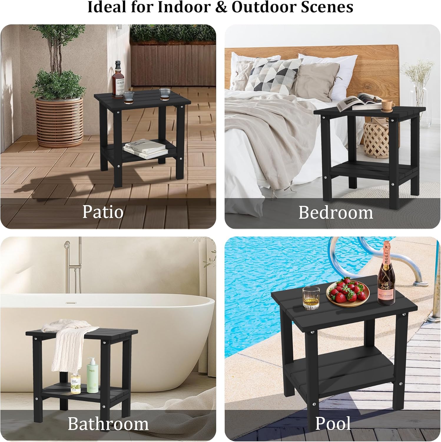 - DOUBLE STORAGE SPACE: This outdoor side table features a double-layered design, offering ample space for books, drinks, or decor, keeping your essentials organized and within reach.