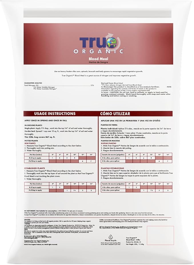 - Encourages Rapid Growth: True Organic Blood Meal is perfect for heavy feeders like corn, spinach, broccoli, and leafy greens, promoting vigorous vegetative growth.