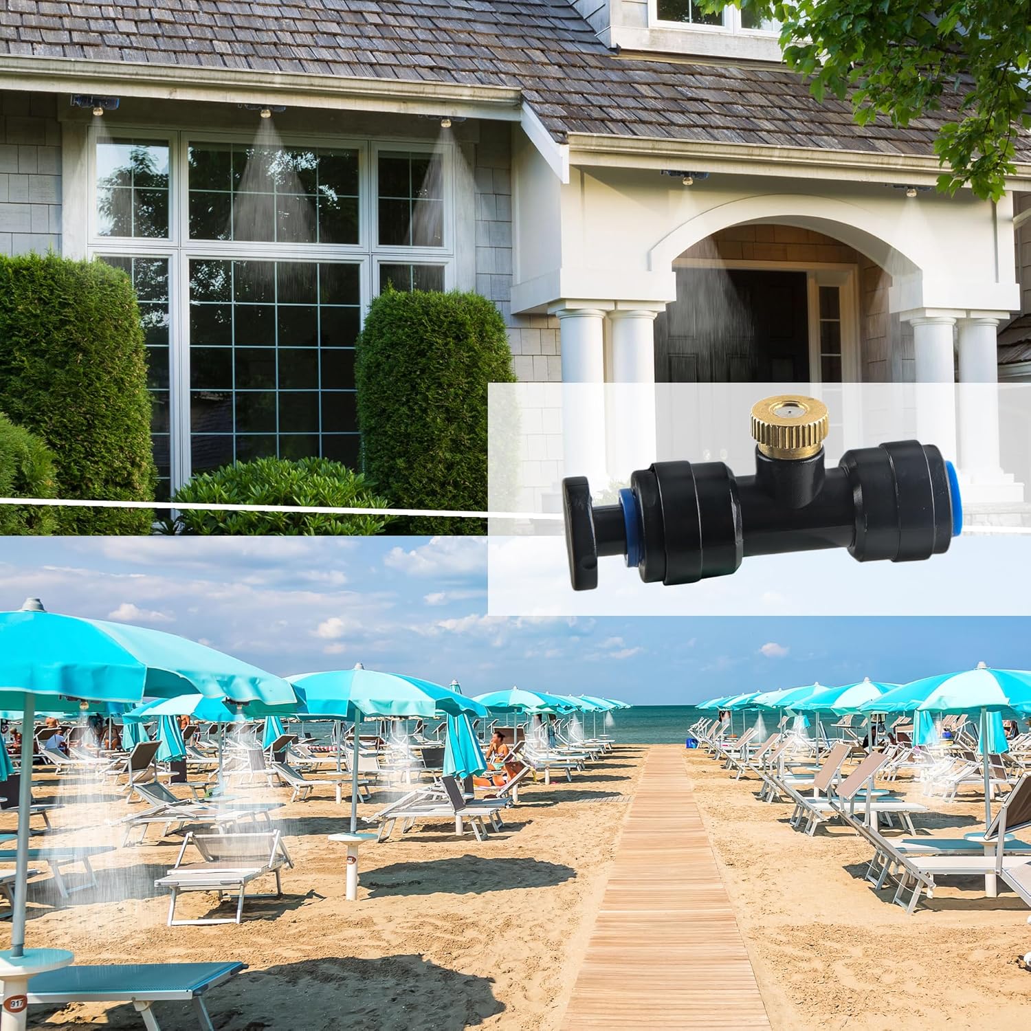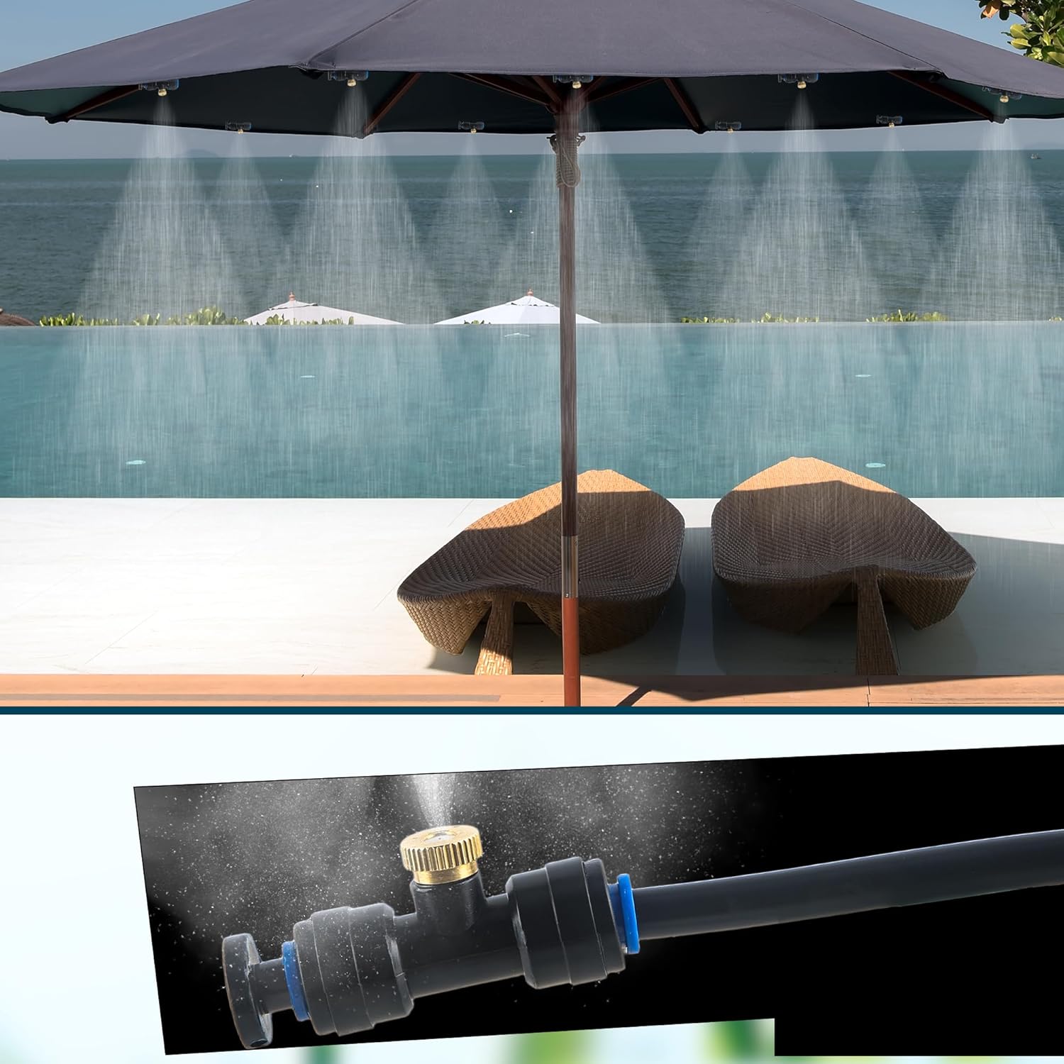 - 【Wide Application】: Our brass misting nozzles kit are essential accessories for creating mist cooling systems, fan mist systems and plant watering systems. They are perfect for your lawn, patio, porch, gazebo, greenhouse, garden, umbrella, shade sail, livestock farm, trampoline and many other patio outdoor locations