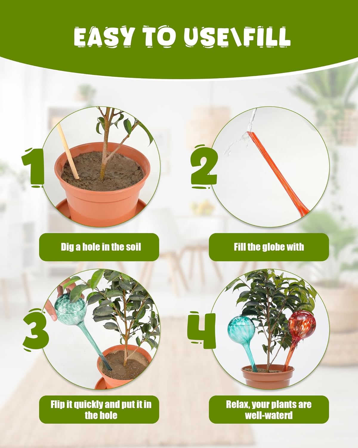 - Vacation-Proof Hydration: Ensure your plants stay lush and vibrant even when you're away with our Glass Globe Watering System, designed for effortless watering during vacations.