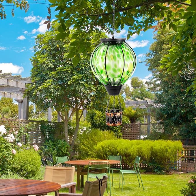 - Serve: Providing satisfying experience is our top priority;The product packaging includes 1 hot air balloon solar ligts.If you have any questions about the Green solar hot air balloon lantern with flame,please feel free to find us at any time