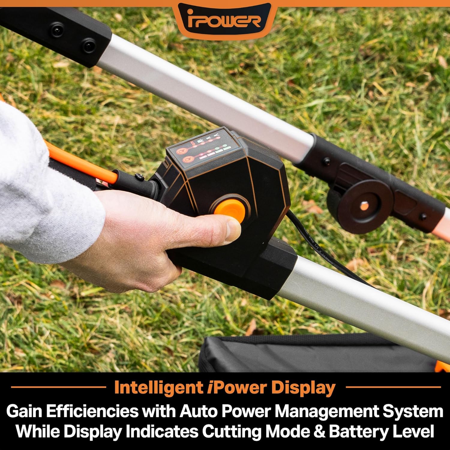 - iPOWER TECHNOLOGY DISPLAY: Save energy and gain efficiencies while mowing your lawn with this intelligent and automatic power management system. Display indicates the cutting mode and battery level.