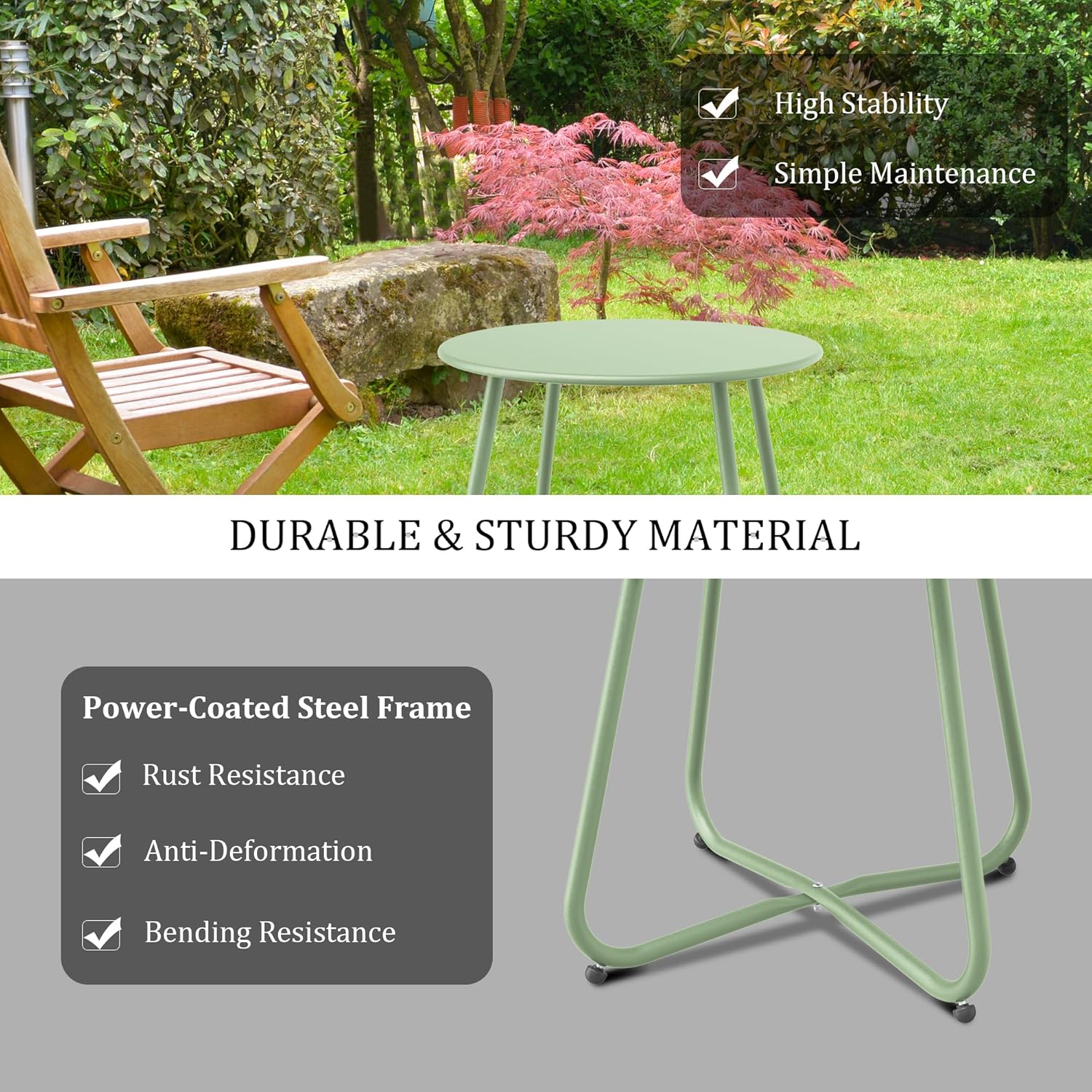 Bean Green Patio Side Table, 18" Weatherproof Steel Outdoor Indoor Side Table for Garden, Balcony, Pool & Tailgate, Rust-Resistant Lightweight Portable Patio End Table