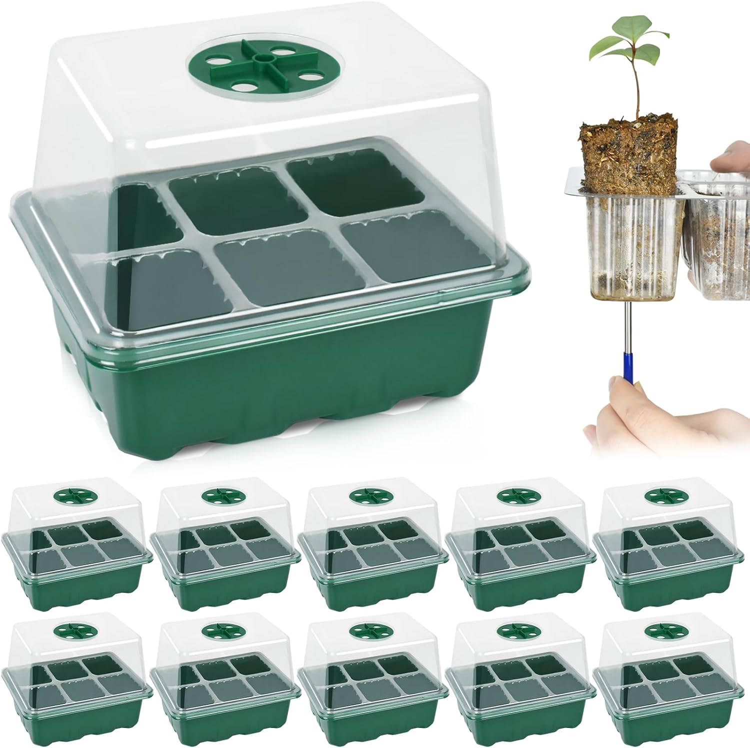 Artcome 10-Pack Seed Starter Tray - 6 Cells Each with Push-Up Ejector - Seed Starter Kit for Rapid Growth and Healthy Seedlings at Home - 30 Cells in Total