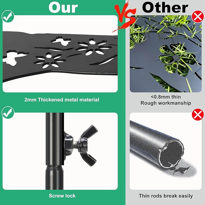 - 【Upgraded thicker metal】Unlike other black cat statue solar lights, the metal is thickened to resist bending. These garden outdoor statues are made of flat-cut metal plate and treated with black strong anti-rust treatment, which are durable and weatherproof. The sturdy metal stake has a screw lock that prevents the cat light from being blown off by strong winds.