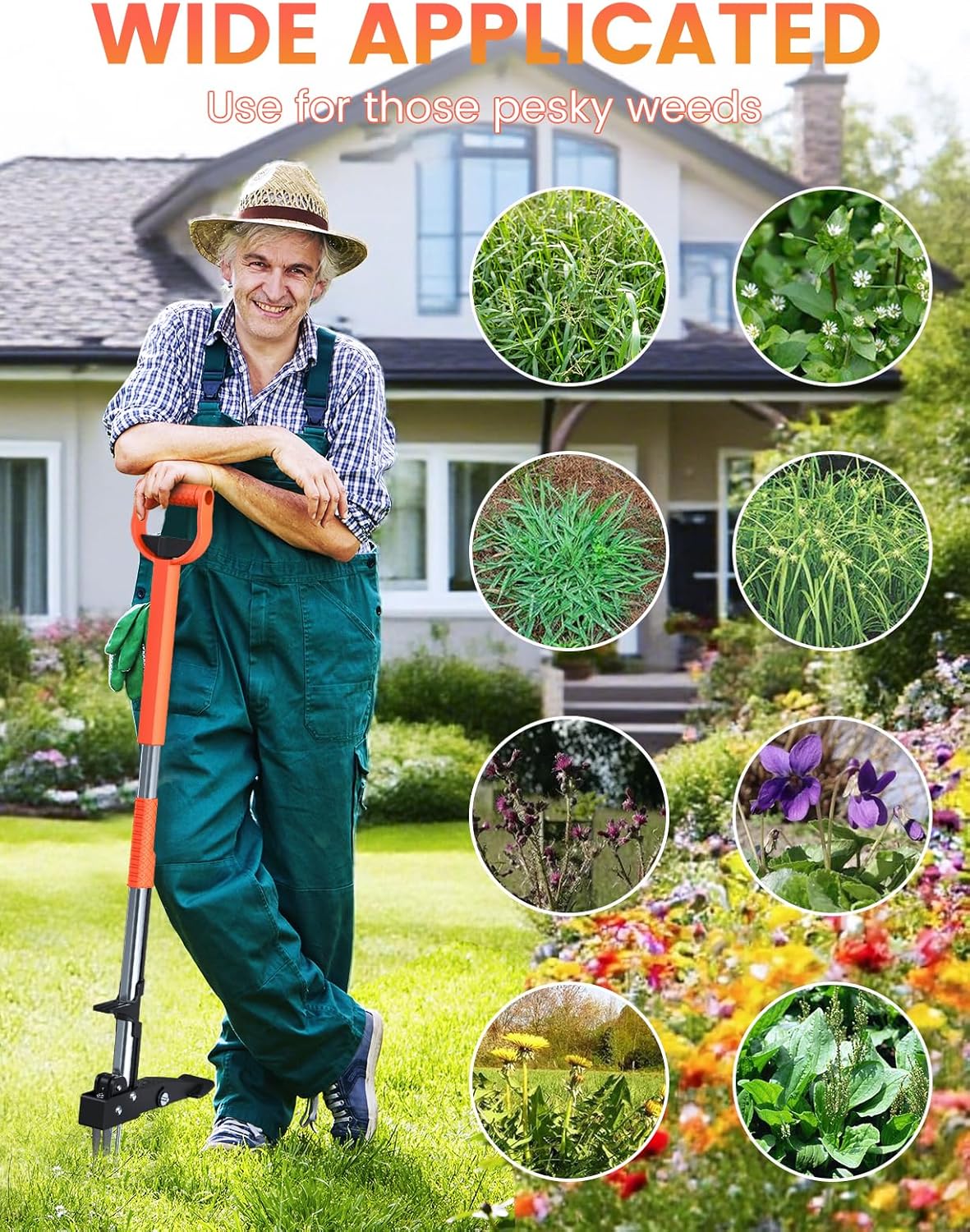 - 【Effortless Weeding with Quick Ejection Design】Our weed puller is designed for convenience: simply step on the pedal, slide the release handle, and the pulled weeds are automatically ejected—no need to touch or yank weeds by hand. Keep your garden tidy and your hands clean with this efficient, easy-to-use tool.