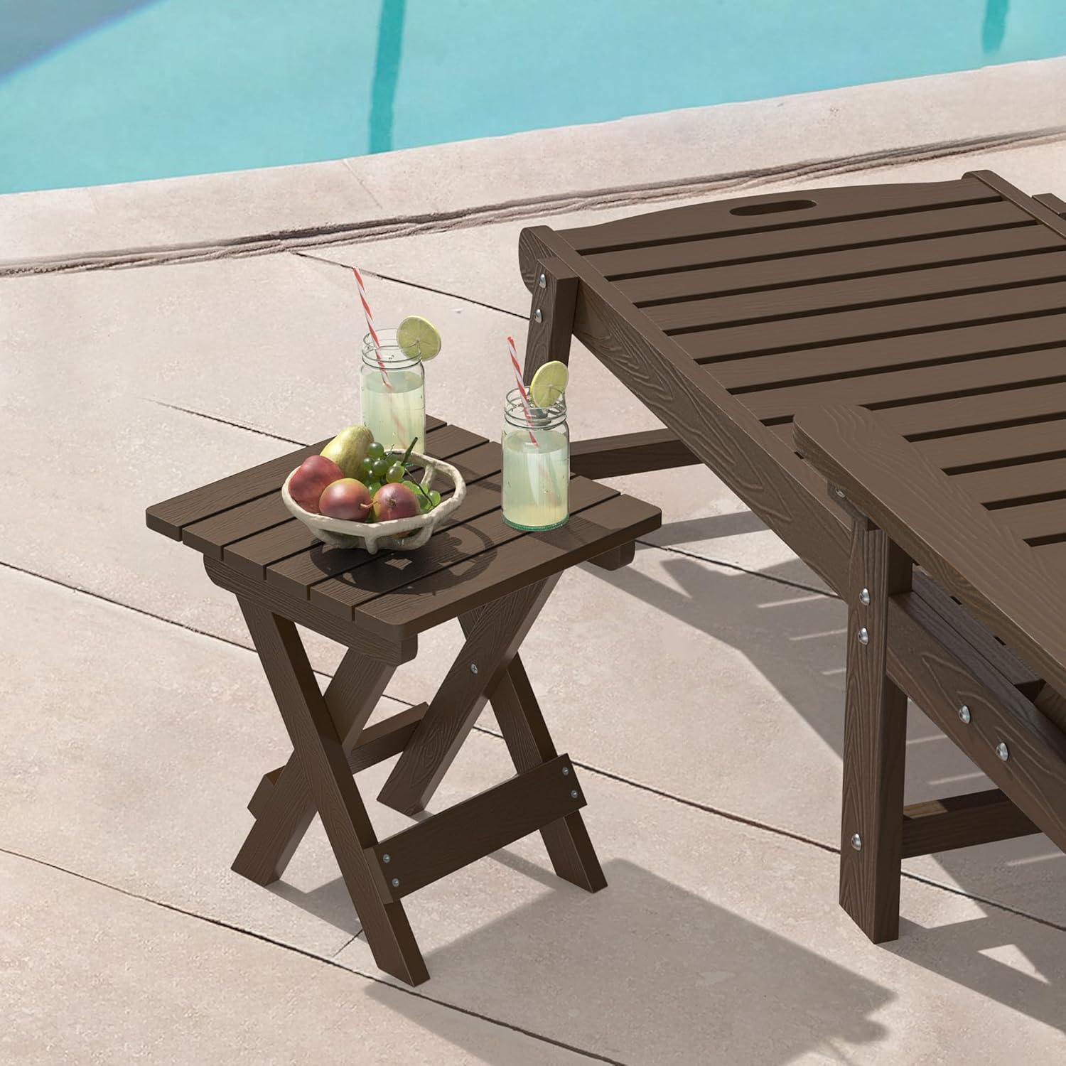 LUE BONA Small Outdoor Folding Side Table, HDPS Outside End Table for Patio, Porch, Deck, Pool, 14 Inch Height, Dark Brown