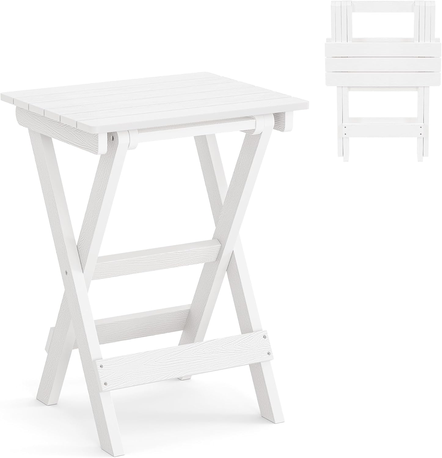 LUE BONA 27 inch Folding Side Table, HDPS Outside End Table for Patio, Porch, Deck, Pool, Weather Resistant, White