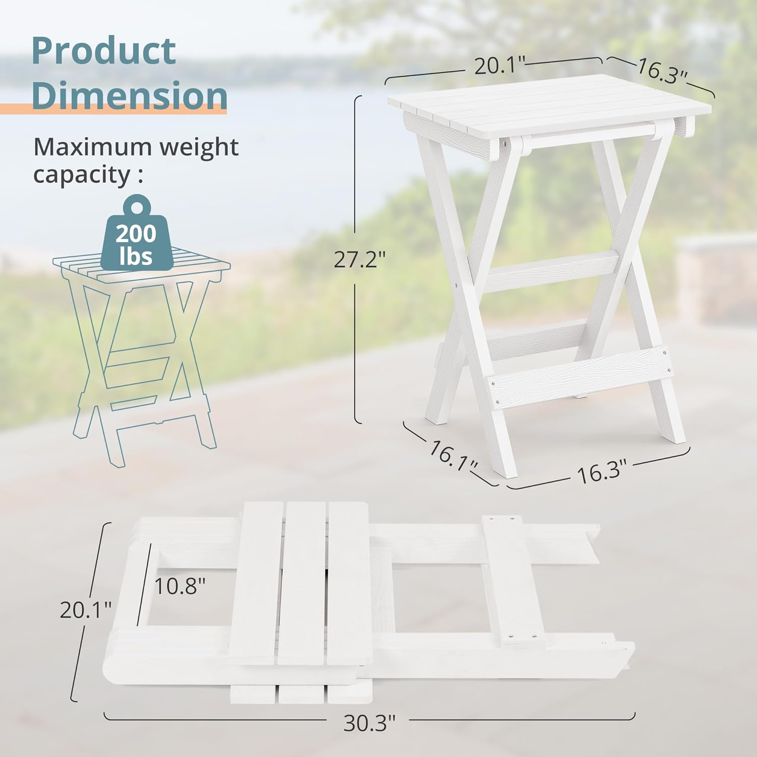 - LUE BONA folding𝗙𝗼𝗹𝗱𝗮𝗯𝗹𝗲 𝗢𝘂𝘁𝗱𝗼𝗼𝗿 𝗦𝗶𝗱𝗲 𝗧𝗮𝗯𝗹𝗲: The LUE BONA adirondack side table cleverly folds down to a smaller size, offering outdoor lovers an ideal way to maximize space when not in use outdoor side table