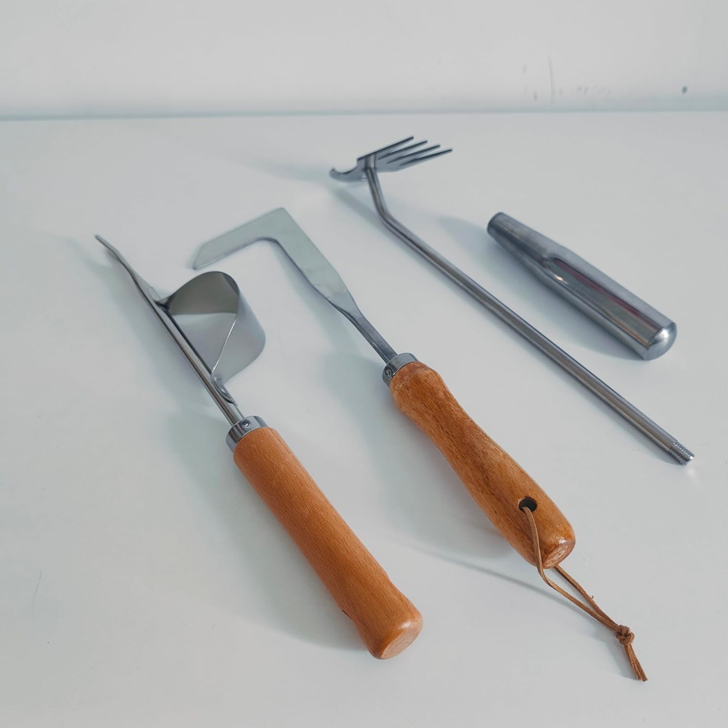 - 1pc "V"shape hand weeder, 1pc 4 teeth weed puller, 1pc L-shaped crack weeder