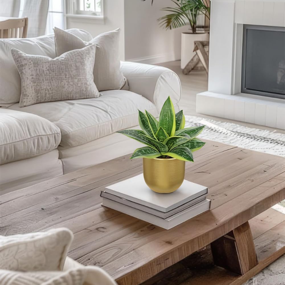 - Perfect Size: Faux snake plant in gold metal pots total height: 9", gold pot: 2.5 "W x 3.7 "H; Please read the dimensions carefully. Succulent agave plants artificial will easily catch you eyes, bring your home a vibrant sense of greenery
