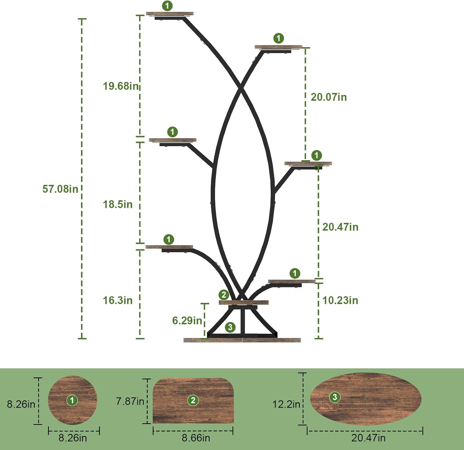 - [Maximize Indoor Plant Display with 8 Tiers] This 57-inch tall indoor plant stand with 8 layers provides ample room for at least 8 medium pots. Its vertical layout is perfect for showcasing greenery, books, art, or collectibles, saving space while enhancing indoor décor.
