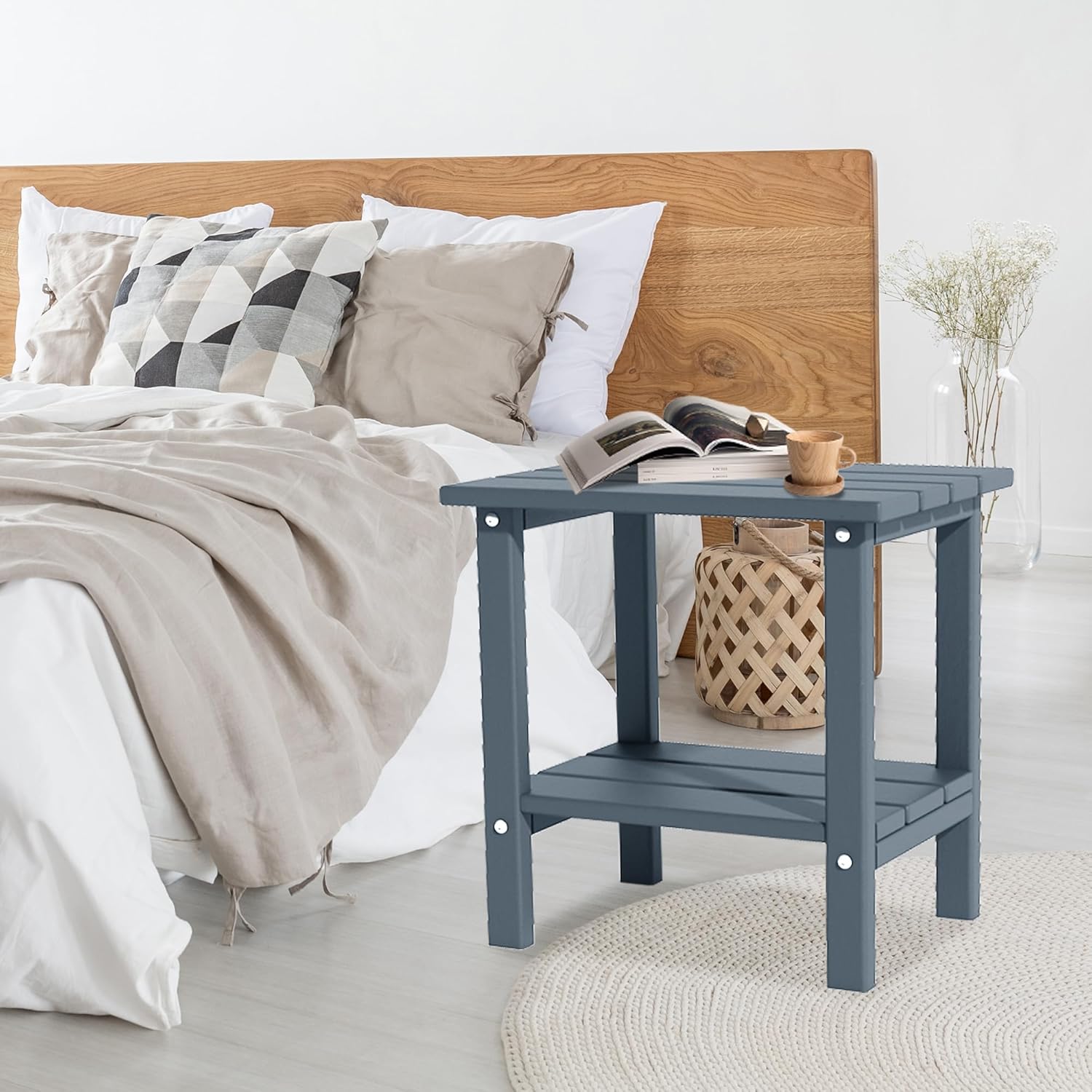 - DOUBLE STORAGE SPACE: This outdoor side table features a double-layered design, offering ample space for books, drinks, or decor, keeping your essentials organized and within reach.