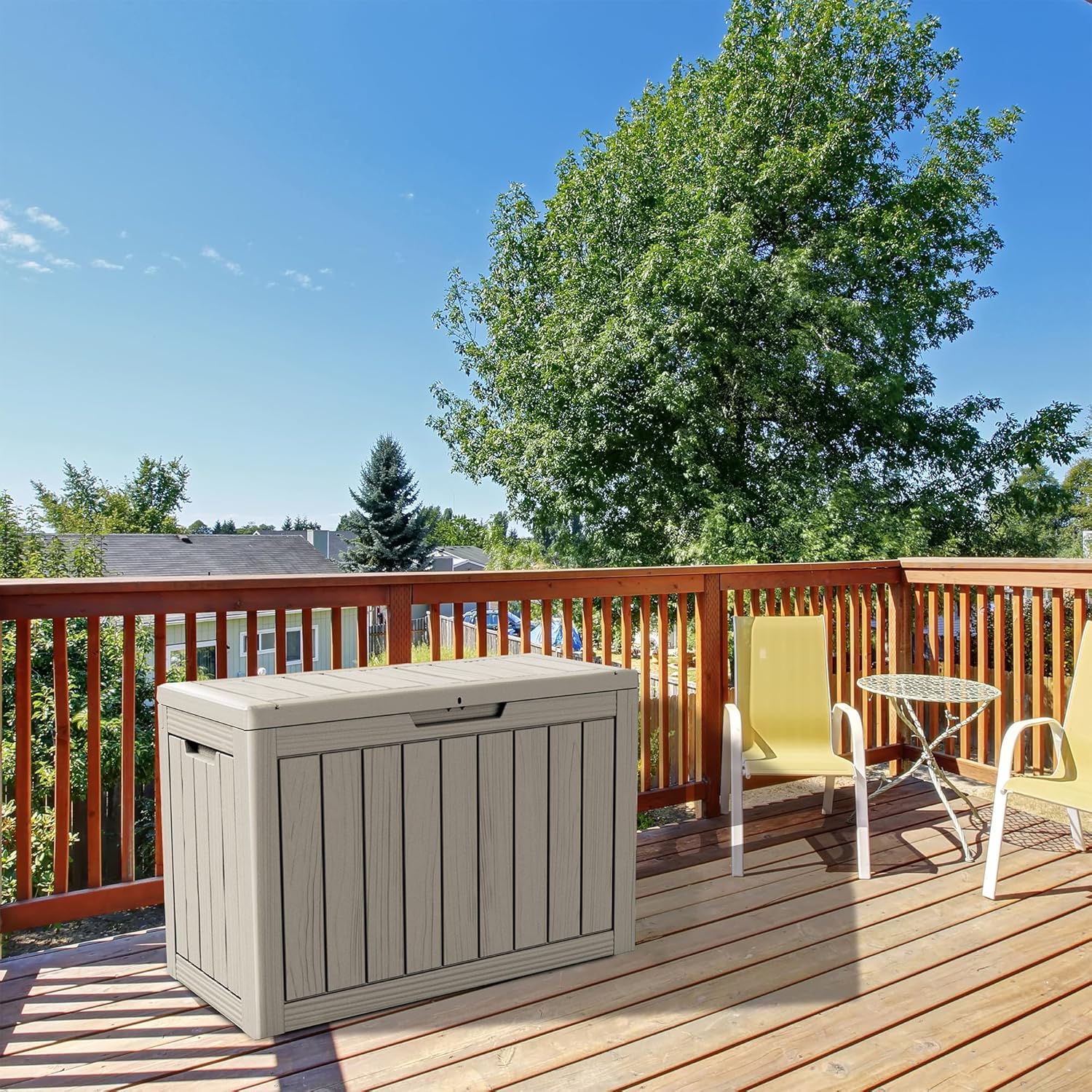 45 Gallon Lockable Resin Deck Box, Waterproof & UV-Resistant Outdoor Storage Box for Outdoor Cushion Storage, Garden Tools & Pool Accessories Storage, Gray