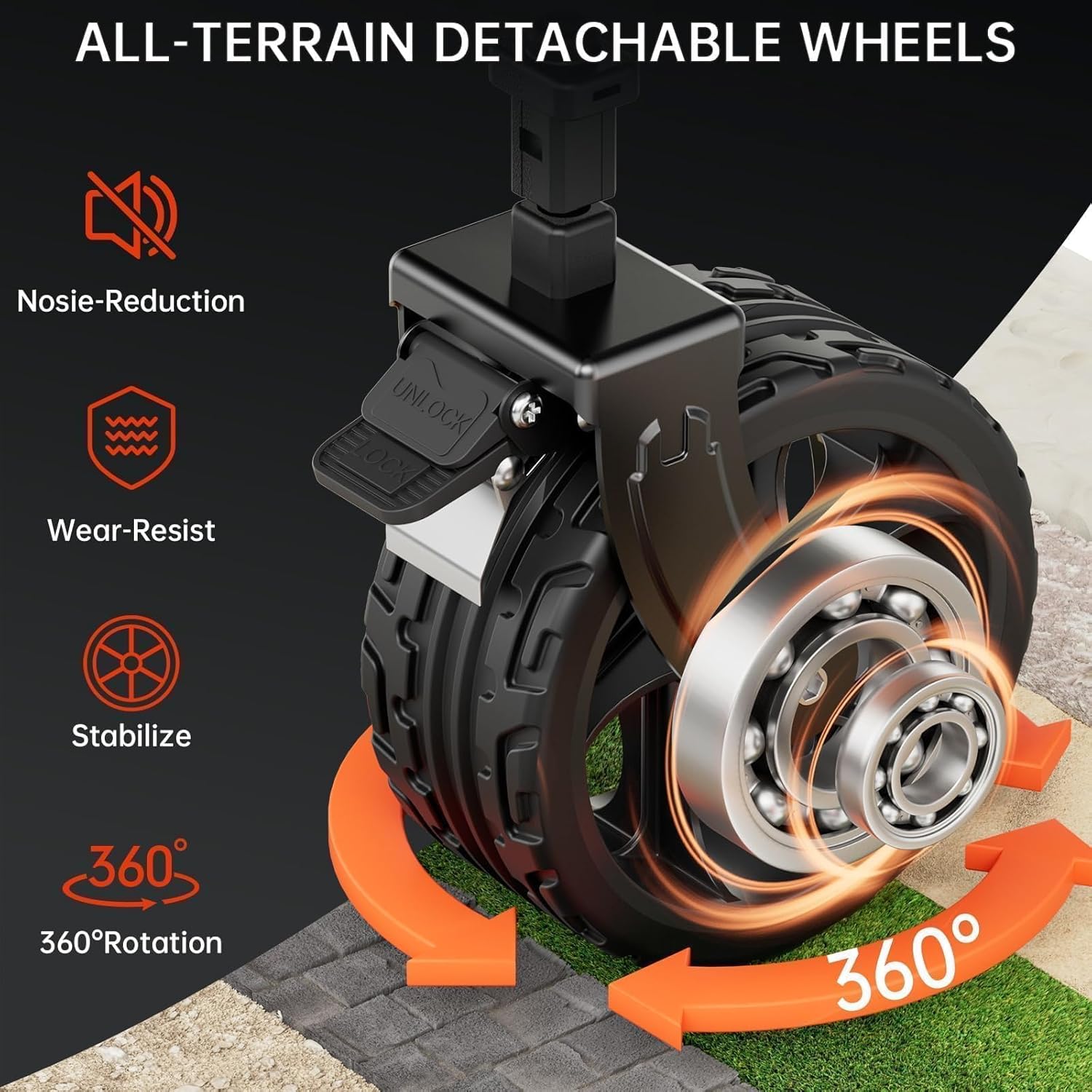 - Quiet 360° Swivel Wheels with Brake:Outfitted with smooth-rolling, low-noise wheels that rotate 360 degrees for effortless steering. The integrated brake keeps the cart stable on slopes, curbs, or uneven surfaces