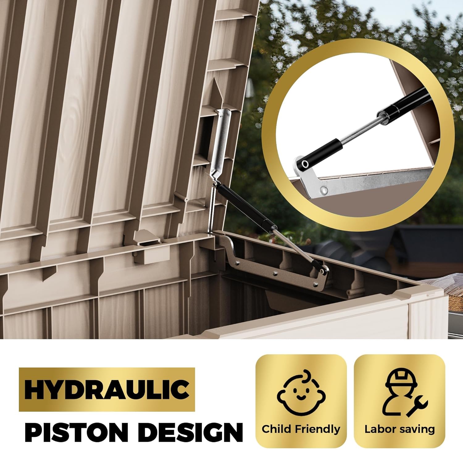 - Material: The patio outdoor storage box is made of the latest high-quality resin material, which makes this patio deck storage box waterproof,UV-resistant, anti-fading, and anti-bending protection, suitable for long-term outdoor use.