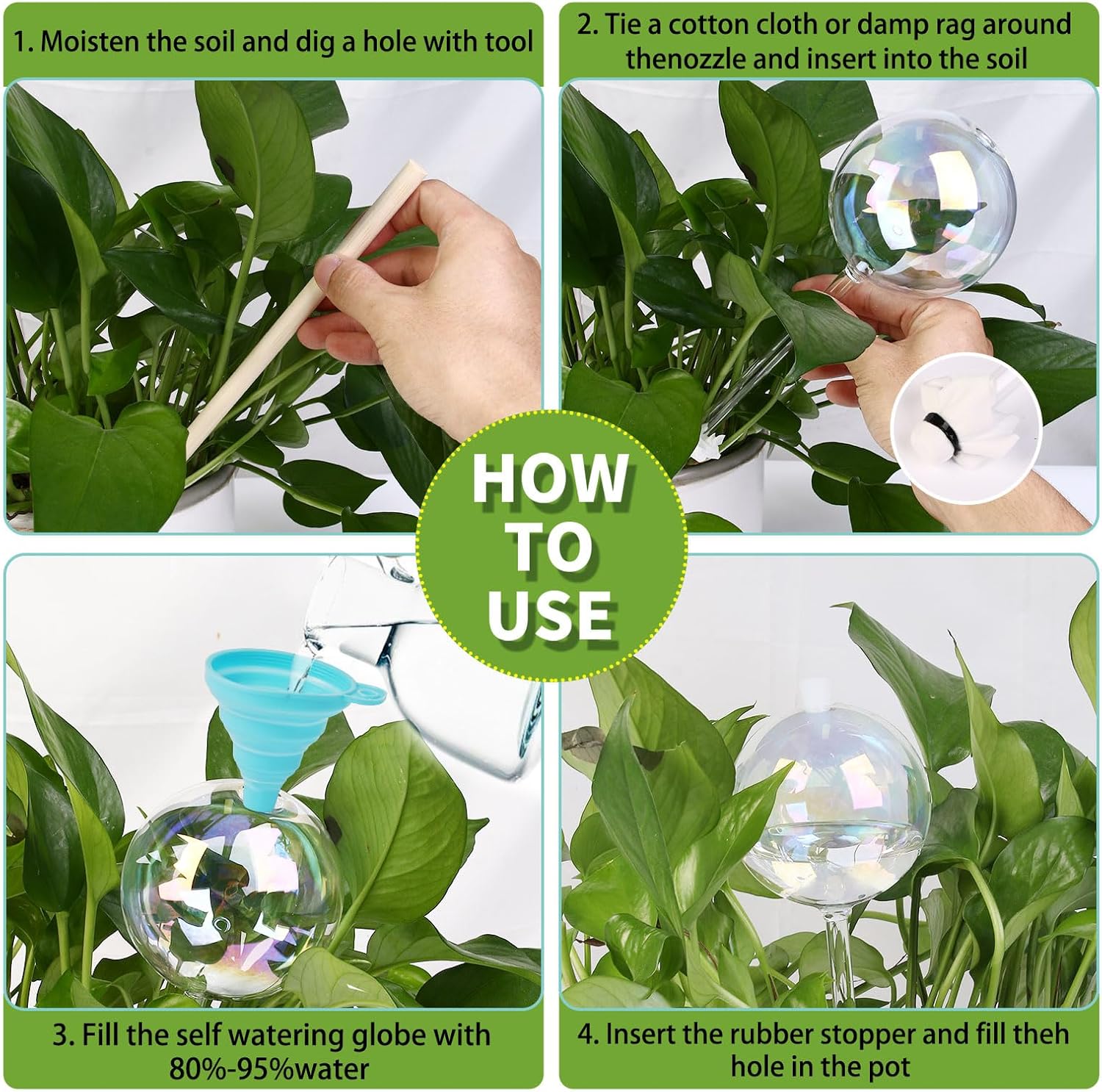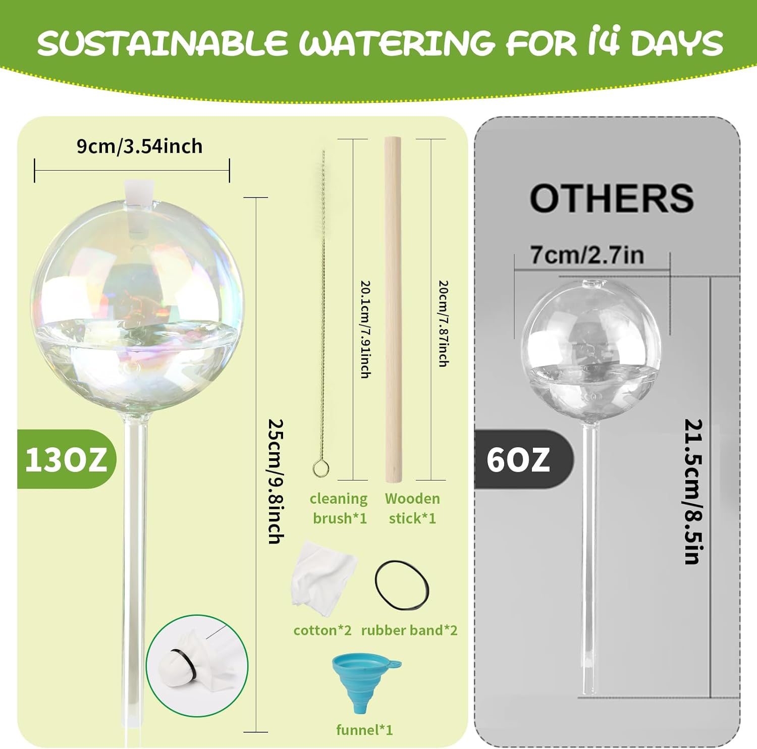 - π Hand-Blown Glass with Rainbow Iridescence Each watering globe is meticulously crafted by skilled artisans, featuring a dazzling rainbow finish that creates mesmerizing light reflections in sunlight β turning your plants into living art.