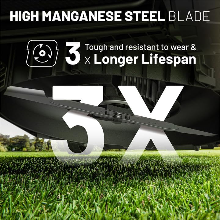 - 6-Height Adjust: The cordless lawn mower with 6 position height adjustment from 0.98 inches to 2.95 inches. This flexibility accommodates various grass types and seasonal needs, ensuring a perfectly manicured lawn year-round.