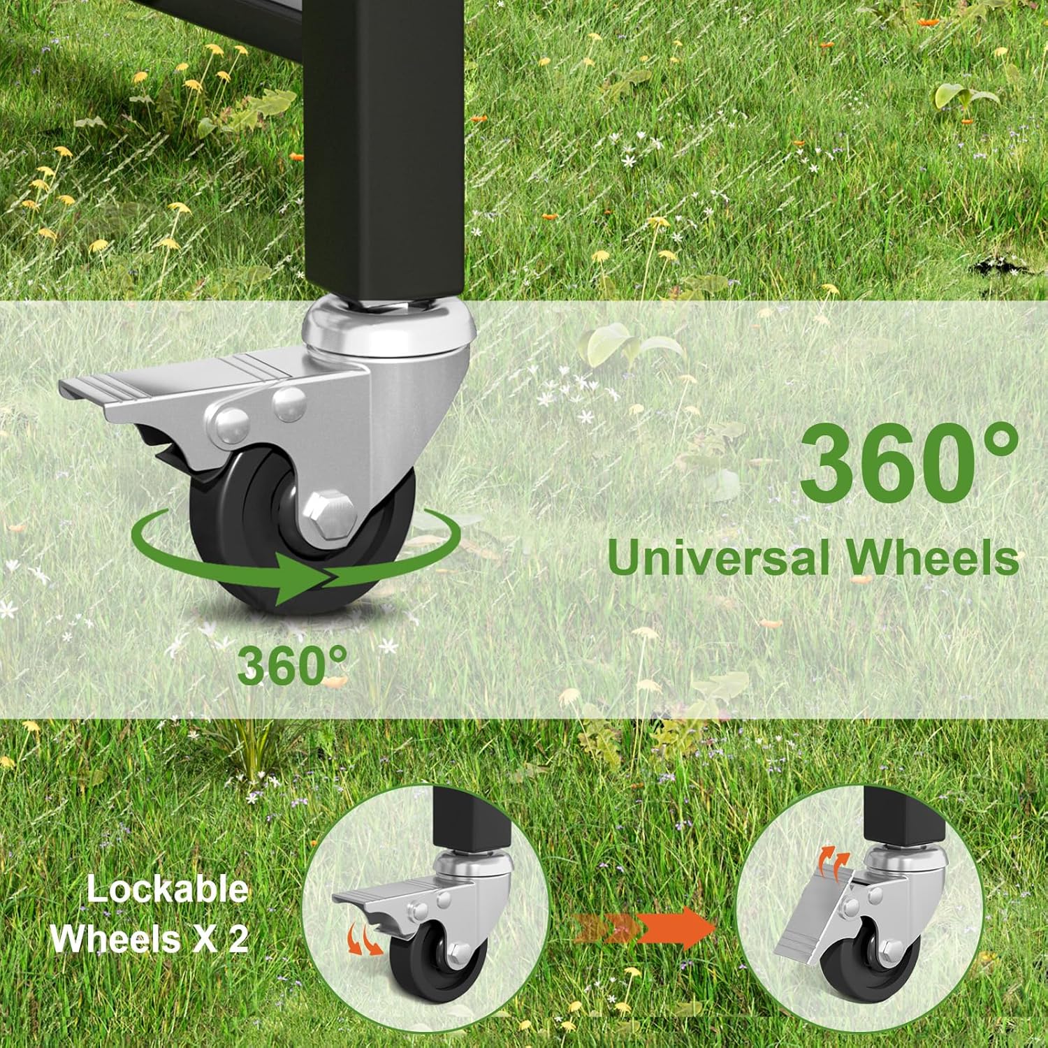 - Easy to move: Equipped with 2 large wheels and 1 ergonomic handle, it offers flexible movement for traversing uneven rocky and grass terrain. Two small wheels with brakes allow you to securely place it anywhere.