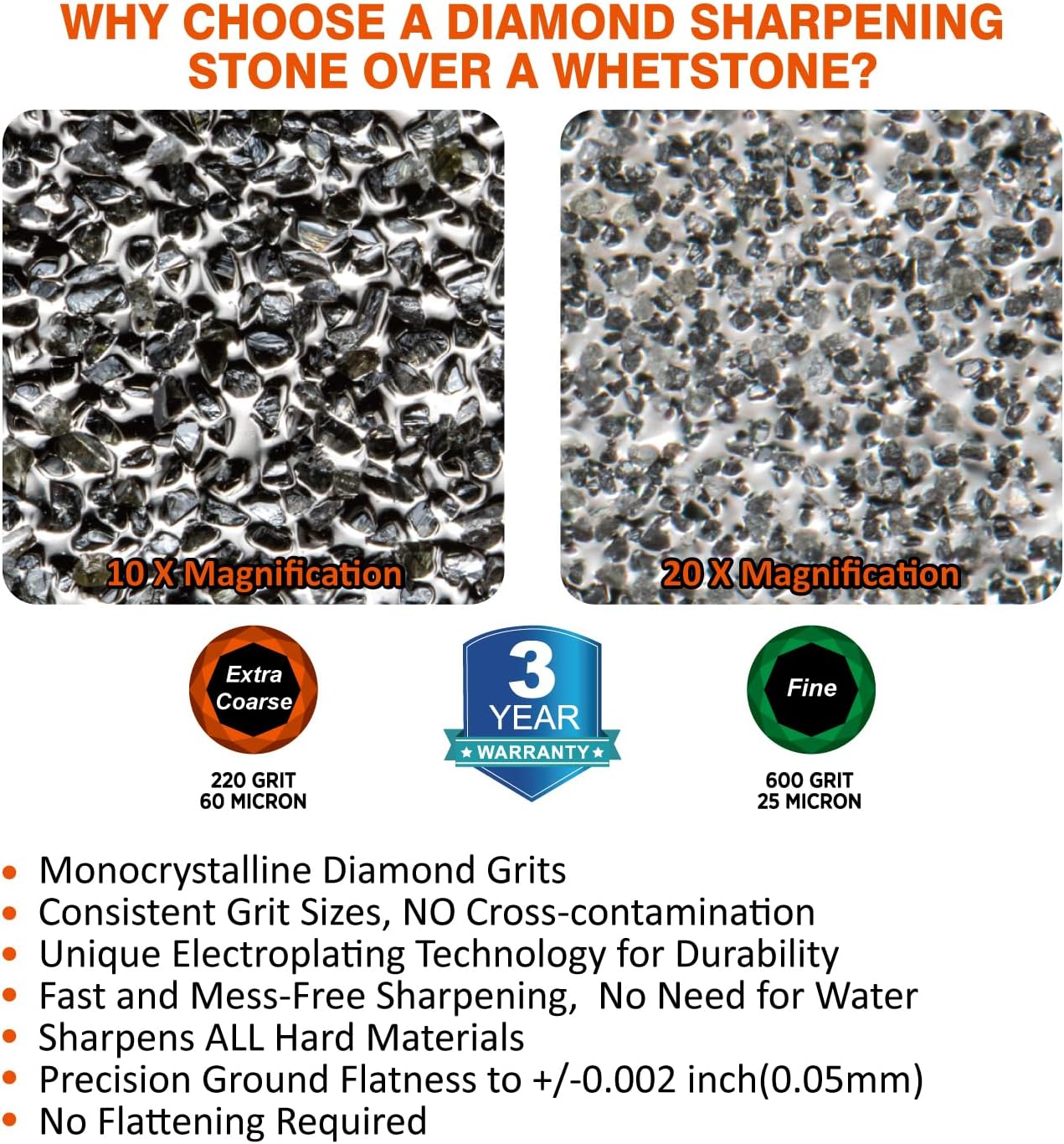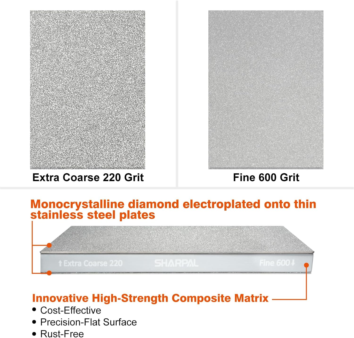 - 𝐖𝐡𝐲 𝐂𝐡𝐨𝐨𝐬𝐞 𝐃𝐢𝐚𝐦𝐨𝐧𝐝 𝐎𝐯𝐞𝐫 𝐖𝐡𝐞𝐭𝐬𝐭𝐨𝐧𝐞𝐬: Diamond sharpens even the hardest steels, including super steels like CPM-series, M390, and Elmax. Unlike traditional whetstones, diamond sharpening plates stay flat, require no lapping, work dry without mess, and deliver more efficient, consistent results.