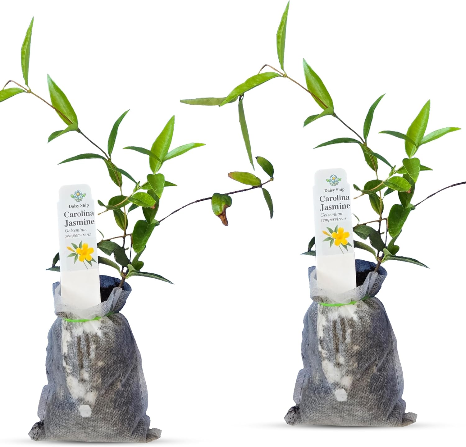 Carolina Jasmine Plant, Live Evergreen Vine, Fragrant Yellow Blooms, Fast Growing Climber for Trellis, Fences, or Arbors - Gelsemium sempervirens - 2 Bags