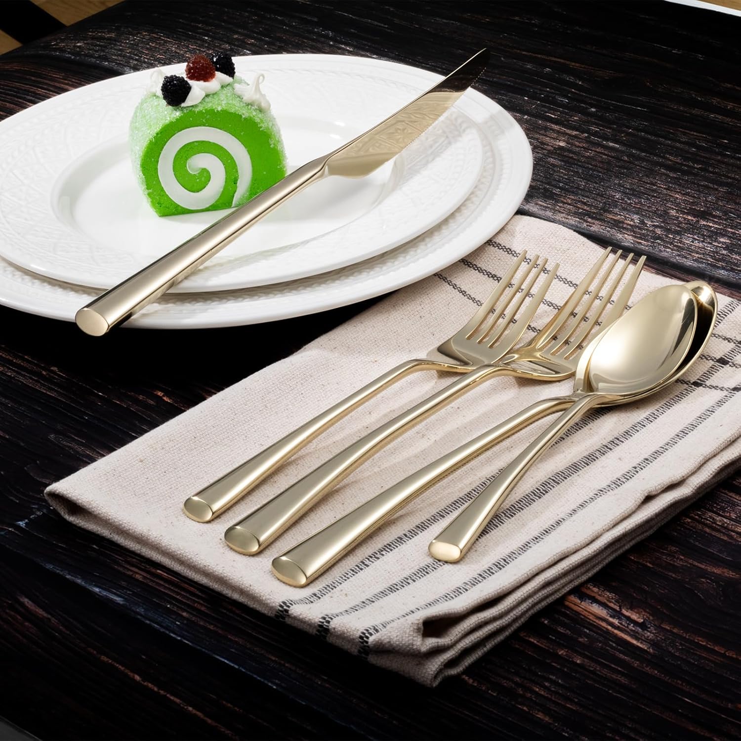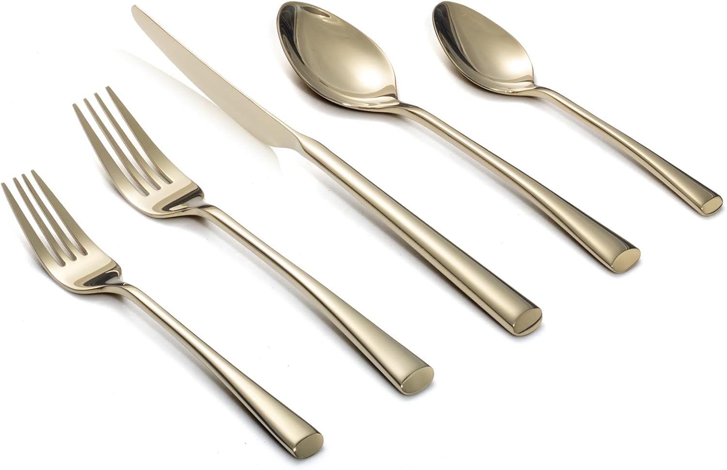 Alata Bailey Champagne Gold 20-Piece Forged Stainless Steel Flatware Set Cutlery Set, Service for 4, Silver Finish, Dishwasher Safe