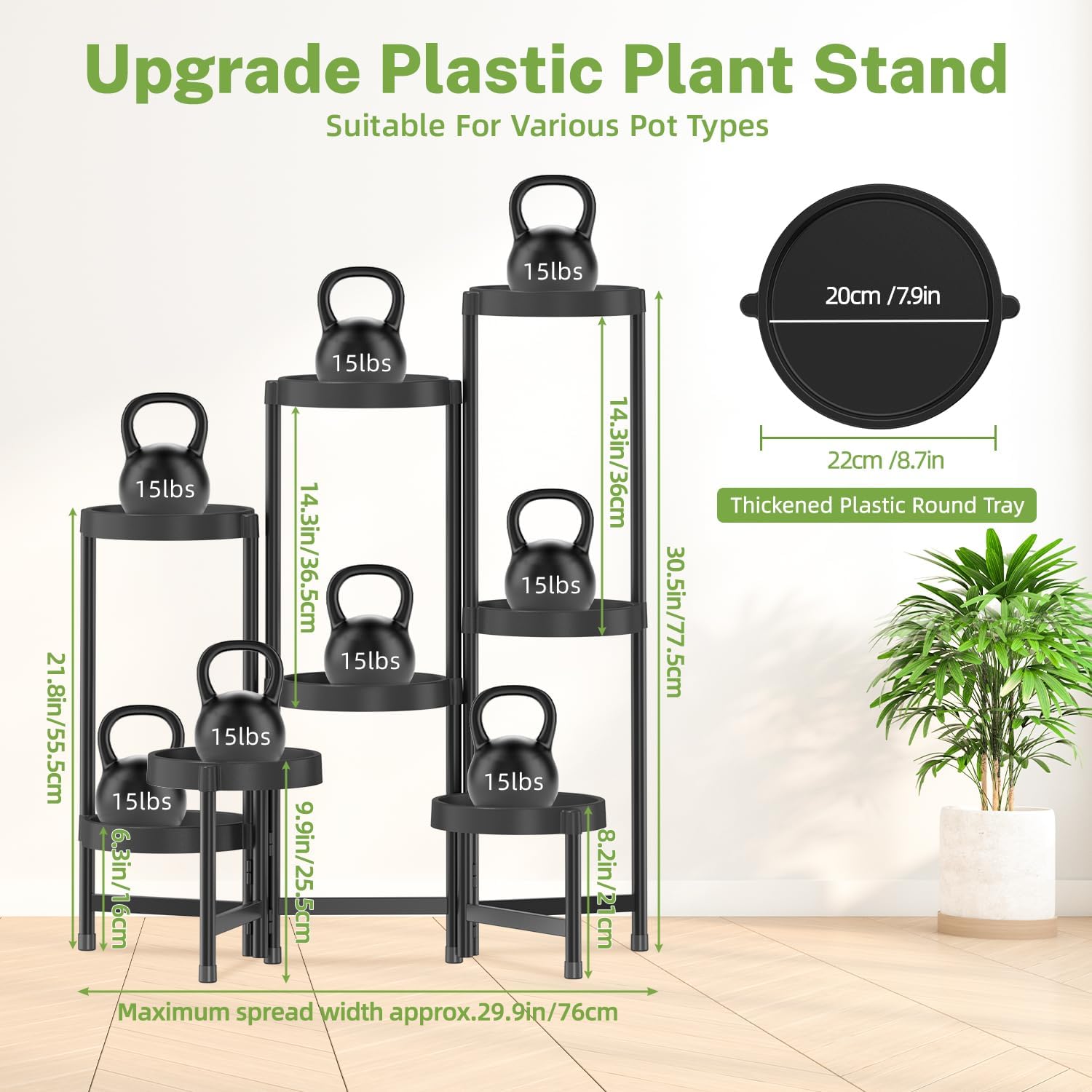 - 8 Premium Waterproof Trays: The trays of corner plant stand are made of waterproof and thickened plastic with long - lasting quality, which is ideal for various indoor and outdoor scenes like balcony, patio, porch and garden, creating a cozy green oasis.